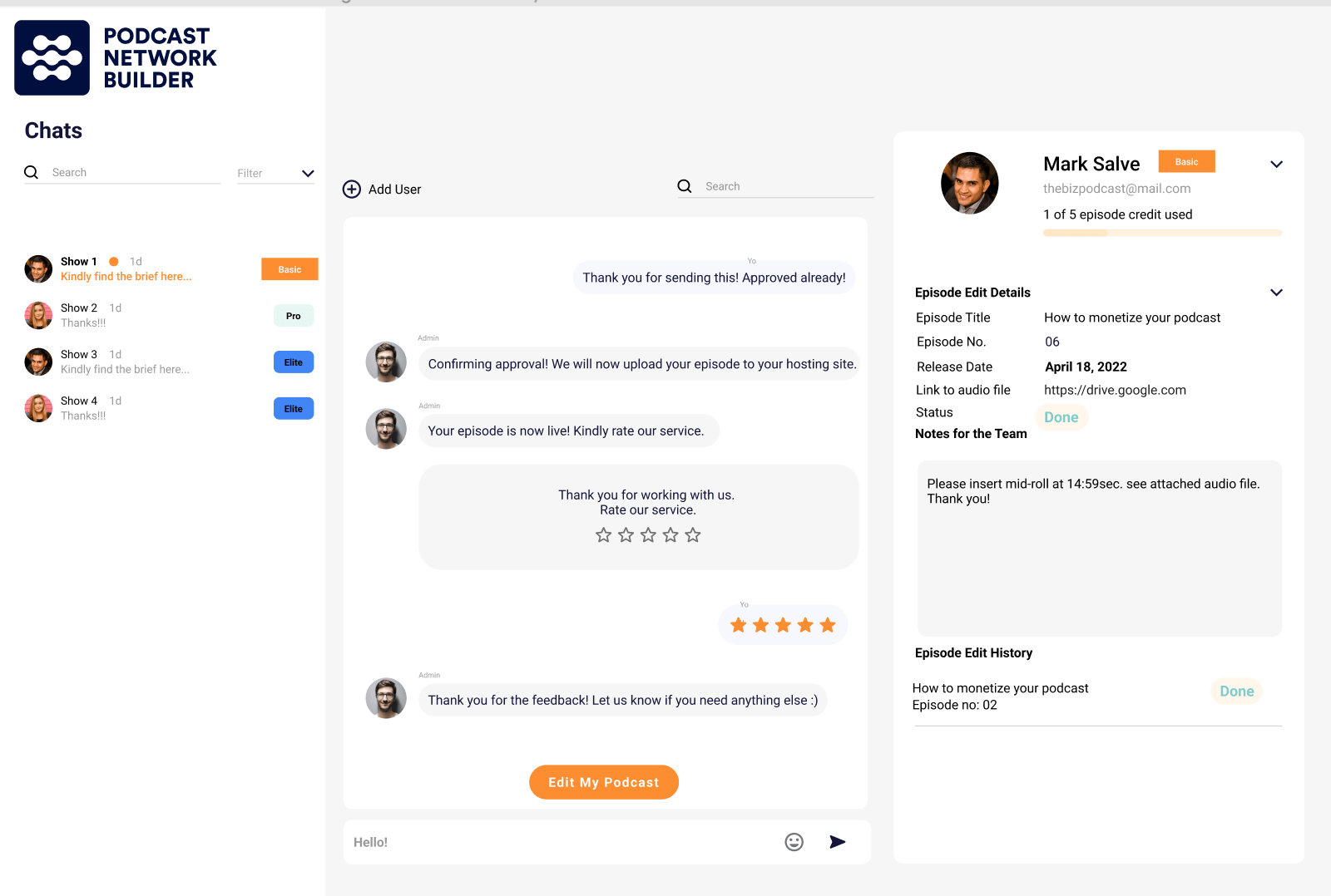 Podcast Network Builder simplifies the podcast network-building process, providing users with an all-in-one solution for managing their podcasts. The platform offers a suite of features, including Podcast Management, End-to-End Podcast Production, Podcast Marketing, Content Conceptualization, and Analytics and Monetization.